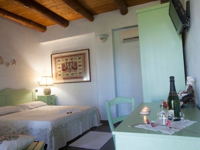 Mit fünf Doppelzimmern stellt Agriturismo Sa Mandra ein kleines Idyll dar, wo Sie sich des reinen Landlebens erfreuen können. Jedes Zimmer hat den Namen einer Pflanzenart und ist im rustikalen, sardischen Stil mit Handarbeitsmöbeln eingerichtet. Von der Terrasse des Zimmers aus haben Sie Blick auf den Garten. Auch verfügen die Zimmer über eine Klimaanlage und Wi-Fi. Eine Aufbettung mit einem dritten Bett für ein Kind bis 12 Jahren ist möglich.