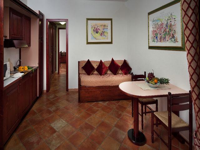 Die Ferienwohnungen sind in einer U-förmige Anlage untergebrach und über 2 Stockwerke verteilt. Die Ferienwohnungen befinden sich im Erdgeschoss oder im ersten Stock und sind in 1- und 2-Zimmer-Wohnungen aufgeteilt. Alle verfügen über einen privaten Eingang, und sind im traditionellen sardischen Stil eingerichtet und mit Klimaanlage ausgestattet. Einige Wohnungen verfügen über einen möblierten Balkon. Abhängig vom Typ der Ferienwohnungen bieten die Ferienwohnungen Platz für bis zu vier Personen.