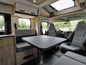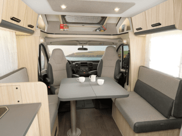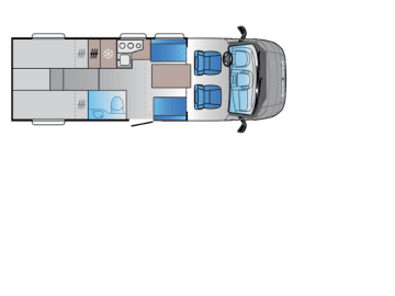 4 Sitzplätze für die Fahrt, 4 Schlafplätze zum Übernachten. Ideal für Familien oder kleine Gruppen, mit voll ausgestatteter Küche, Badezimmer und viel Stauraum.