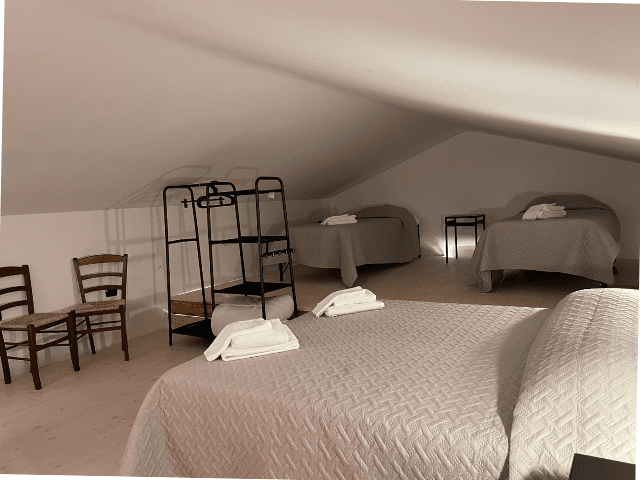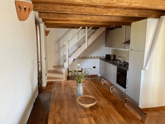 Die beiden Dreizimmerwohnungen Sinistra und Destra sind komplett und modern eingerichtet. Petra und Edwin haben diese beiden Wohnungen 2021 realisiert. Die Appartements verfügen über ein Wohnzimmer mit Küche, ein geräumiges Schlafzimmer mit Doppelbett und einen Schlafboden mit Doppelbett und zwei Einzelbetten. Die Küche verfügt über einen geräumigen Kühlschrank mit Gefrierfach, Herd, Spülmaschine, Backofen und ist mit ausreichend Pfannen, Geschirr und Besteck ausgestattet. Die Wohnungen verfügen über ein Badezimmer mit Waschbecken, Dusche und WC. Es gibt auch eine Waschmaschine im Badezimmer. An der Vorderseite haben die beiden Wohnungen eine gemeinsame große überdachte Terrasse. Jede Wohnung verfügt über einen Esstisch mit ausreichend Stühlen auf der Veranda. Auf der hinteren Terrasse befinden sich Liegestühle und ein Wäscheständer. Bade-, Bett- und Küchenwäsche sind inklusive.