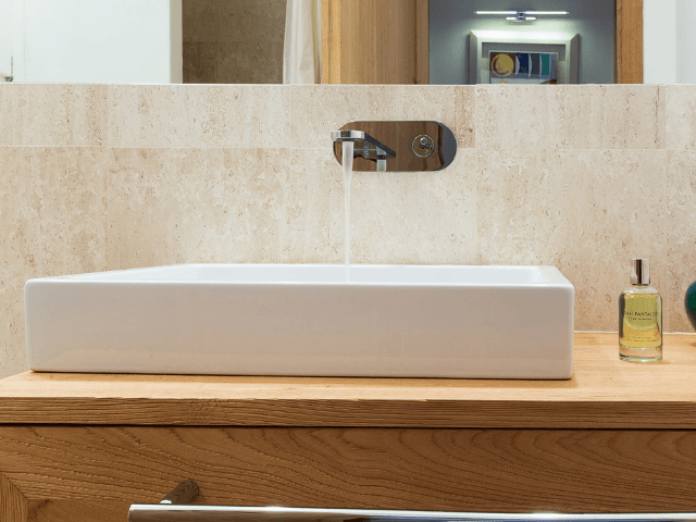 Das Hauptschlafzimmer bietet ein Doppelbett, Einbauschränke und ein Badezimmer. Das zweite Schlafzimmer liegt im fensterlosen Untergeschoss und besteht aus einem Wohnbereich mit TV und Sofa sowie einem Einzelbett sowie einem Badezimmer mit Dusche.