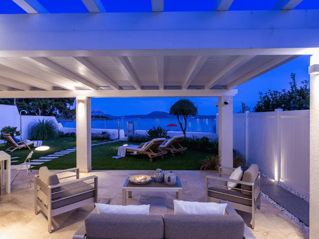 Die frisch renovierte, einstöckige Villa befindet sich in Premiumlage direkt am türkisfarbenem Meer. Das Anwesen hat einen frischen, modernen architektonischen Stil, mit klaren Linien und hellen, sommerlichen Farben. Das Zugangstor des Anwesens führt direkt zum Strand.