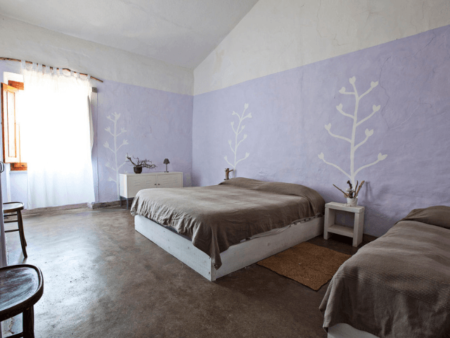 Der Stazzo von Maria Chivoni bietet zwei in gedeckten Farben gehaltene Schlafzimmer: Eines mit Ehebett und ein weiteres mit drei Einzelbetten. Es steht ein Badezimmer mit Waschmaschine zur Verfügung.
