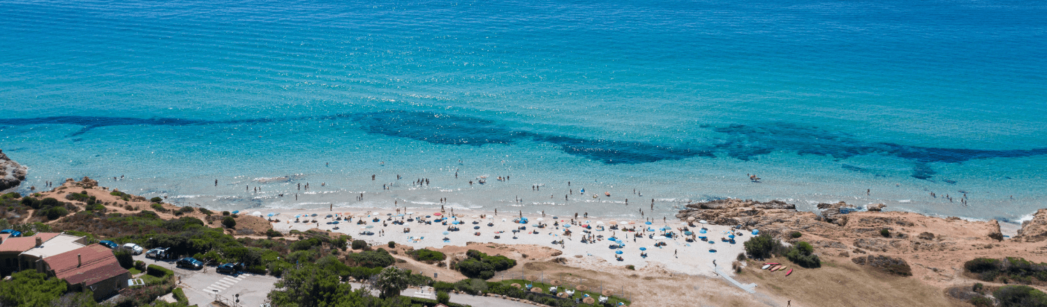 Die kleine Feriensiedlung Pinus Village erwacht nur im Sommer zum Leben, in der Nebensaison verirren sich nur wenige Urlauber hierher. Und ein paar Wanderer und Mountainbike-Freunde: Denn neben einer schönen, meist geschützten Sandbucht hat Pinus Village noch mehr zu bieten. Hier startet eine alte Römerstraße, die herrlich an der Küste entlangführt. Die Antica Strada Romana Nora - Bithiae verband einst die punisch-römischen Siedlungen Nora bei Pula und Bithia bei Chia. Wo früher Eselskarren entlang schnauften, kann man heute wunderbar zum Morgenspaziergang starten oder abends eine Offroad-Runde mit dem MTB drehen. Zum Einkaufen und Bummeln fährt man nach Pula, zum Surfen und Traumstrand genießen nach Pula, und den rest der Zeit genießt man hier eine herrliche Ruhe.
