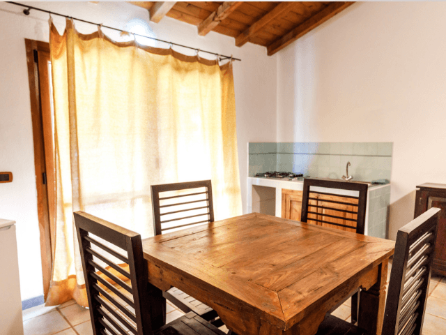 Die Ferienwohnungen Mare di Gallura befinden sich in locker in den Dünen verteilten, einstöckigen Granitstein-Bungalows, jeweils zwei Wohnungen pro Gebäude. Alle verfügen über eine private Veranda mit einfachen Balkonmöbeln. Jedes Apartment ist mit schwerem, sardischen Holz Mobiliar eingerichtet und besteht aus einem Wohnzimmer mit Küchenecke und einem Badezimmer mit Dusche, WC und Bidet. Das Schlafsofa im Wohnzimmer bietet Schlafplätze für 2 Personen, in den Zweizimmer-Appartements gibt es ein separates Schlafzimmer. Von Ihrer Bungalow-Wohnung aus können Sie die schöne Aussicht in die Landschaft und das wunderbare Gefühl von Raum und Freiheit genießen, das heute nicht mehr überall auf Sardinien zu finden ist. Wachen Sie morgens mit dem wunderbaren Duft von Rosmarin und dem würzigen Elicrisio-Kraut auf, die hier im Mittelmeer zwischen den Dünen wachsen.