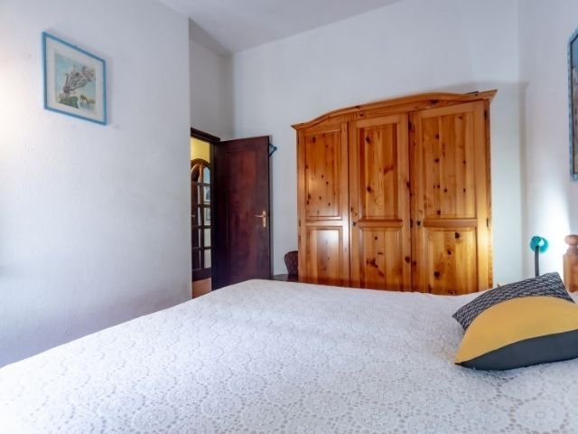 Das Anwesen der Villa Monica hat einen privaten Zugang auf der Rückseite des Hauses über den hauseigenen Parkplatz. Von dieser gelangt man auf die große überdachte Veranda mit Grillplatz, die auf den schönen gepflegten Garten blickt. Hier gibt es auch eine praktische Außendusche. Von der Veranda betritt man das Haus, in dem sich ein großes Wohnzimmer mit Kamin befindet. Vom mit viel Liebe zum Detail rustikal gestalteten Wohnzimmer gelangen Sie mit geringem Höhenunterschied in den Schlafbereich, wo sich zwei Doppelzimmer befinden, eines mit kleiner privater Toilette, ein Schlafzimmer mit zwei Einzelbetten und ein gemeinsames Badezimmer mit Dusche. Ebenfalls vom Wohnzimmer erreicht man die Küchenzeile und durch diese gelangt man zu einem zweiten Badezimmer mit Dusche und Waschmaschine.