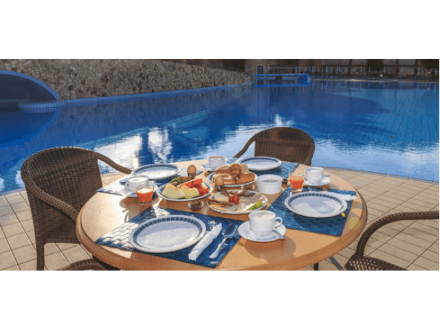 Auch das gastronomische Angebot der Anlage kann sich sehen lassen: Tagsüber haben Sie die Wahl zwischen der Bar des Empfangsbereichs und der Poolbar. Im Restaurant "Liberotto" wird das Frühstück und die Halbpension serviert - in Buffetform.