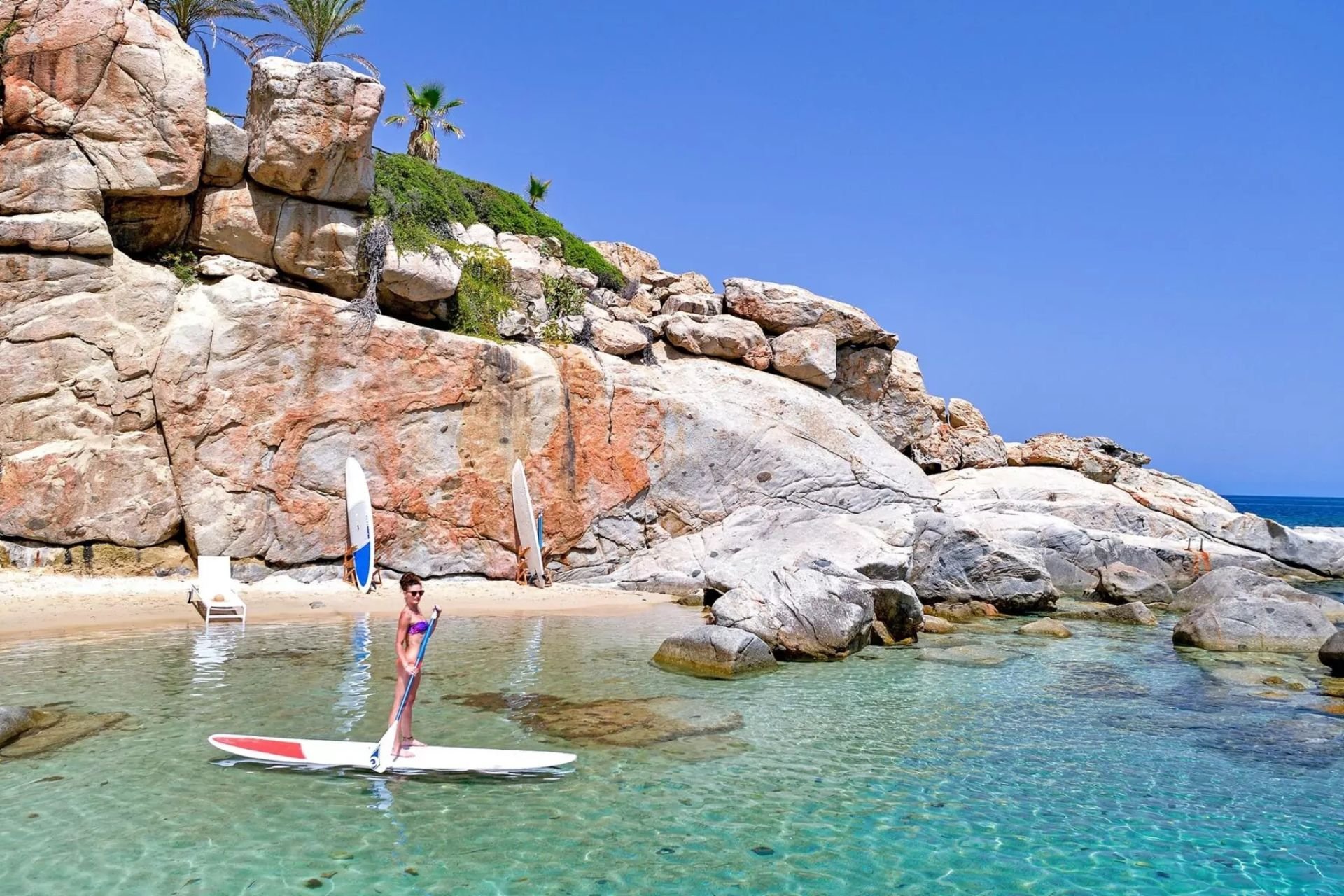 • Barca Suite: Aufwachen und den Sonnenaufgang erleben – der beste Start in den Tag. Der Holzboden und die Einrichtung erinnern an ein elegantes und luxuriöses Boot, das auf den Horizont zusteuert, perfekt für einen grenzenlosen Urlaub.