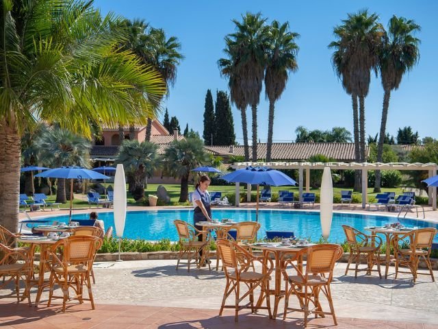 Nicht nur am Strand, auch in dem riesigen Garten des Hotels findet sich ausreichend Platz für Entspannung. Alle Gäste können das große Schwimmbad, das Putting-Green und den kostenlosen Bus-Service zum Strand Nora und Kinderspielplatz nutzen. Von Juni bis September werden für die jungen Hotelgäste dreimal wöchentlich Wasserspiele und Aktivitäten organisiert. Außerdem wird Aquagymnastik und Pilates angeboten. In der kleinen Gartenlaube können Sie sich mit verschiedenen Kosmetikanwendungen und Massagen verwöhnen lassen.