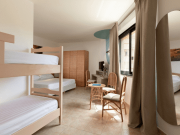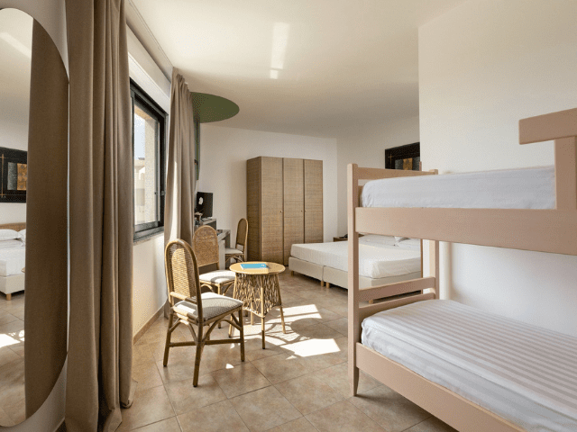 Die alle gleichwertig mit Klimaanlage, Safe, TV und WLAN/WiFi ausgestatteten Standard-Zimmer verfügen gegen Aufpreis über einen Balkon und Meerblick und können mit einem dritten und vierten Bett zum Familienzimmer werden