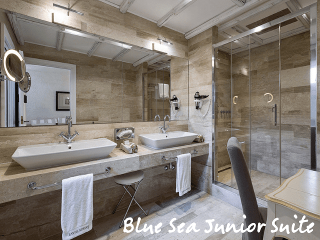 Der Sandstreifen vor der Tür des Luxushotels ist exklusiv für Hotelgäste reserviert. Sie erreichen den Strand über zwei Treppen, die Sie direkt vom Garten zum Privatstrand führen. Hier mangelt es nicht an Komfort. So gibt es Umkleidekabinen sowie Duschen und Toiletten. Die Sonnenschirme und Liegestühle am Strand sind nicht im Voraus zugewiesen, sodass Sie jeden Tag Ihren Lieblingsplatz auswählen können. Nur für die erste Reihe wird ein Aufpreis erhoben.