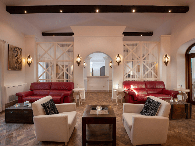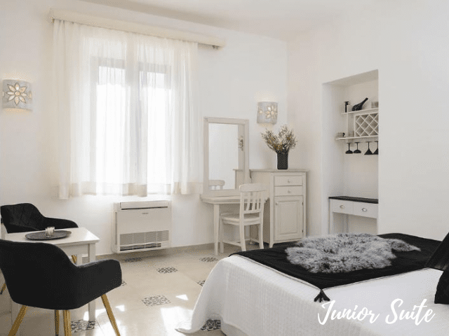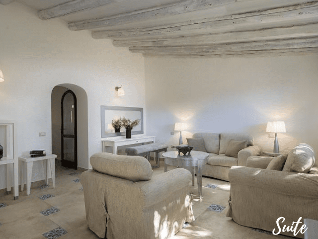 Die elegant eingerichtete Junior Suite mit großer Terrasse und eigenem Privatpool ist perfekt, wenn Sie sich ein wenig privaten Luxus gönnen wollen. Die geräumigen Suiten bestehen aus einem Wohnzimmer und einem Schlafzimmer und verfügen über eine große Whirlpool-Badewanne. Dieser Zimmertyp ist auch für zwei Erwachsene geeignet, wobei die Möglichkeit besteht, zwei Zustellbetten für 1 oder 2 Kinder bis zwölf Jahre zu schaffen. Außerdem gibt es ein Familienzimmer für vier Personen. Dieses Zimmer grenzt an den zentralen Hof und besteht aus zwei ansprechend eingerichteten Zimmern mit zwei separaten Badezimmern.