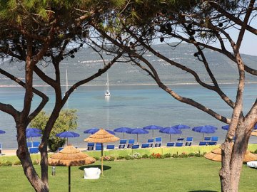 Auf 10 große, locker in einem schattigen Pinienhain verteilte Gebäude beherbergen insgesamt 160 Zimmer mit Balkon oder Terrasse. Die Zimmer sind frisch renoviert und mit einem äußerst eleganten Interieur in gedeckten Tönen und jede Menge modernem Komfort können Sie den Blick auf den Park oder das Meer genießen. Alle Zimmer sind klimatisiert und bieten Internet und einen bestuhlten Außenbereich.