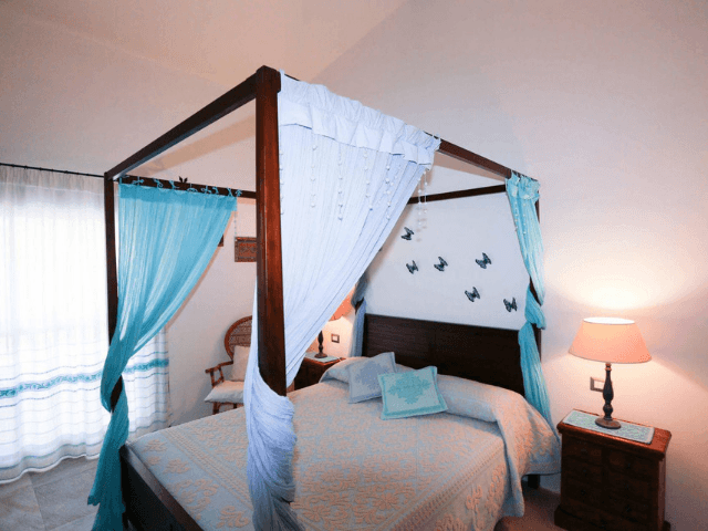 Viel Platz für sechs Personen - in der Villa Elvi stehen drei im neosardischen Stil eingerichtete Doppel-Schlafzimmer zur Verfügung. Sie sind alle gleichwertig ausgestattet, eines davon verfügt über zwei zusammenstellbare Betten. Sie teilen sich insgesamt zwei Bäder, jeweils mit Dusche, WC, Bidet und Waschgelegenheit.