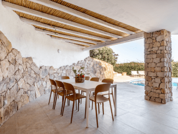 Die XXL-Ferienvilla Melograno mit eigenem Swimmingpool liegt südlich der Costa Rei im sonnigen Südosten Sardiniens. Von ihrem hochwertigen Feriendomizil aus erreichen Sie den feinen weißen Sandstrand „Scoglio di Peppino“ in vier Gehminuten. Der Strand hat seinen Namen von dem schönen großen Granitfelsen auf der Südseite des Strandes, der einst der Lieblingsplatz eines Fischers namens „Peppino“ gewesen war. Heute ein beliebter Sprungfelsen und Unterwasserparadies zum Schnrocheln! Auch wenn Sie mit Kindern unterwegs sind, ist dieser Strand dank des flach abfallenden Meeres sehr angenehm. Den Hintergrund dieser Küste prägen die Berge im Naturschutzgebiet 'Sette Fratelli'. Diese Berglandschaft ist eine wunderschöne grüne Gegend, in der Sie wandern und Mountainbike fahren können und mit etwas Glück auf Rehe und Mufflons treffen. Einen Kilometer von der Villa ist das Zentrum der Costa Rei mit diversen Restaurants und Eisdielen, wo in den Sommermonaten ein angenehmes Treiben herrscht.