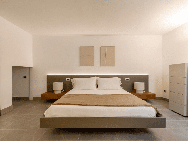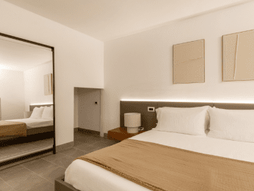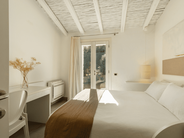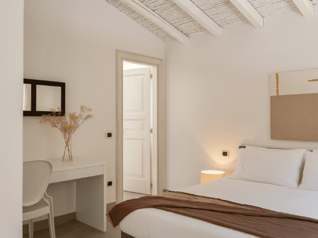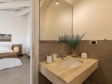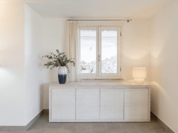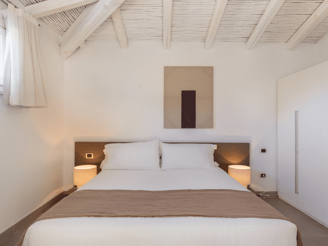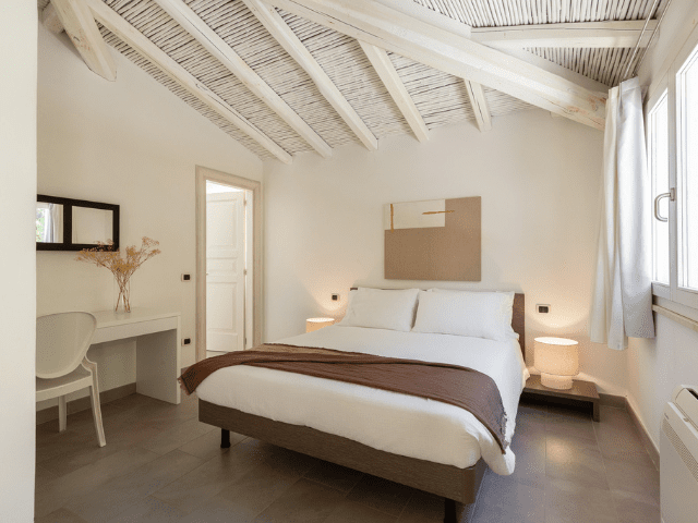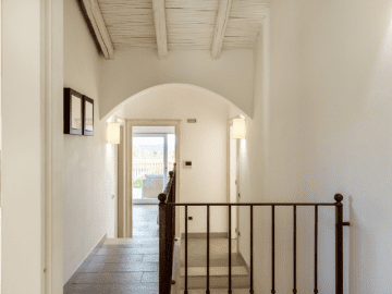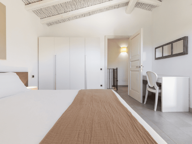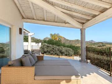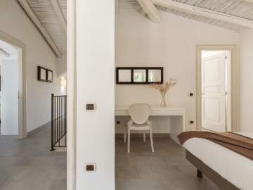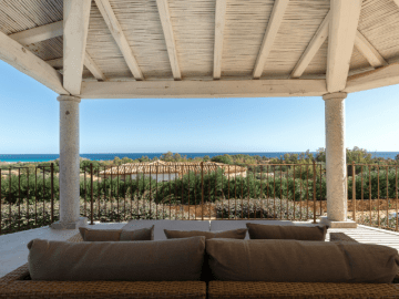 Die Villa Melograno ist eine charmante Villa innerhalb einer Anlage von Luxusvillen in Castiadas, einem renommierten Ferienort an der Südostküste Sardiniens. Das Anwesen bietet absolute Privatsphäre und allen Komfort und erstreckt sich über zwei Ebenen. Im Erdgeschoss befinden sich ein großer, heller Wohnbereich, eine ausgestattete Kochnische mit Induktionskochfeld sowie ein Essbereich mit großem Tisch und Stühlen. Ebenfalls auf dieser Ebene befindet sich ein Doppelzimmer mit eigenem Bad (Dusche). Für den Wohnbereich gibt es zusätzlich ein kleines Gästebad. Im ersten Stock befindet sich der Schlafbereich mit vier Schlafzimmern: