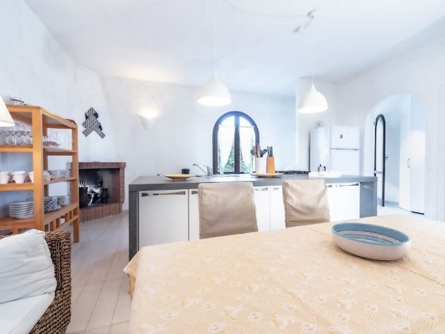 Dieses schicke Ferienhaus im traditionellen Costa Rei Stil besticht vor allem durch seine inneren Werte: Ein großer, gepflegter und neu gestalteter Innenbereich mit Kücheninsel, die das Herz von Hobbyköchen höher schlagen lässt. Hier befindet sich auch ein Wohn- und Essbereich, außerdem haben Sie Zugang zu der schönen und sommerlich-schattigen Wohnterrasse mit Sitzbereich, Essecke und offenem Barbecue-Kamin. In dem kleinen Gartenteil kann man dank der Liegestühle wunderbar relaxen.