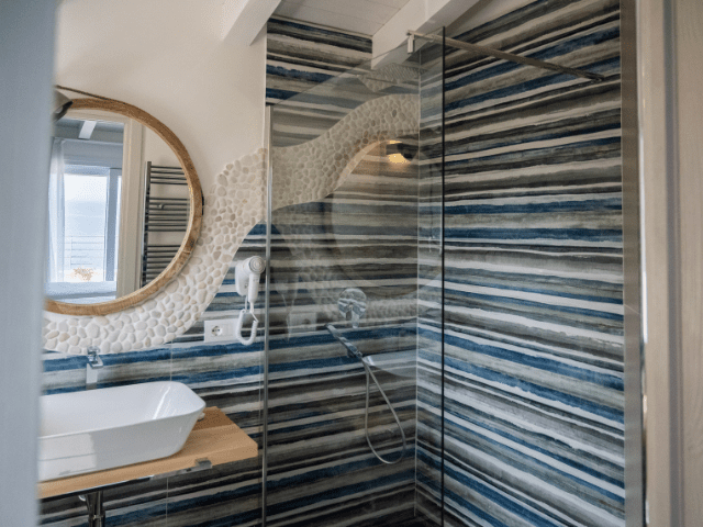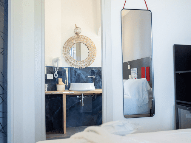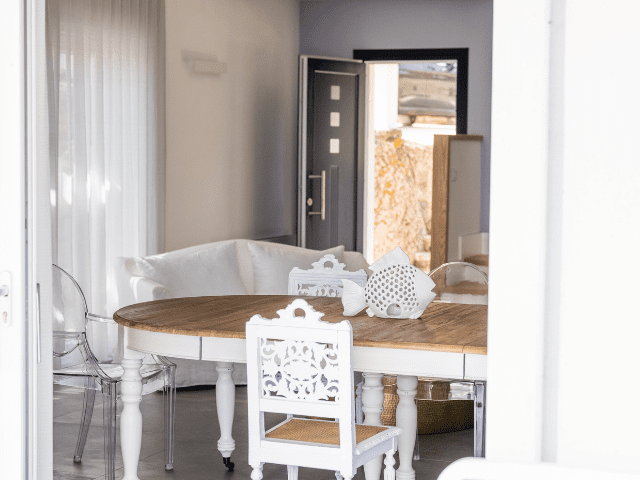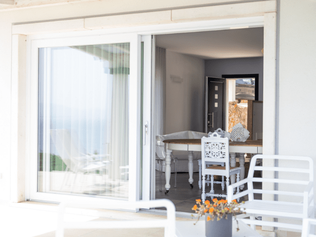Eine große Veranda mit Tisch und Stühlen, auf der Sie bei Sonnenuntergang in Gesellschaft von Freunden und Familie entspannen können, bietet Zugang zu einem großen, geschmackvoll eingerichteten Wohnzimmer. Im Erdgeschoss befinden sich neben dem Wohnzimmer mit Kochnische eines der Doppelzimmer mit eigenem Bad, ein weiteres Bad und einen Wirtschaftsraum. Die weiteren drei Schlafzimmer liegen in der obersten Etage und bieten alle Meerblick. Zwei dieser Schlafzimmer bieten ein Doppelbett und verfügen über ein eigenes Bad und einen Balkon. Das dritte Schlafzimmer verfügt über ein Dachfenster und ein französisches Bett für 1 Person oder auf Anfrage für 2 Kinder. Die Villa Primaguardia ist mit individuell regulierbarer Klimaanlage, WLAN, Erlebnisdusche, Smart-TV und Alarmanlage ausgestattet. Im Außenbereich gibt es eine Ladestation für Elektroautos und Bettwäsche und Handtücher, Strandtücher sind ebenfalls vorhanden.