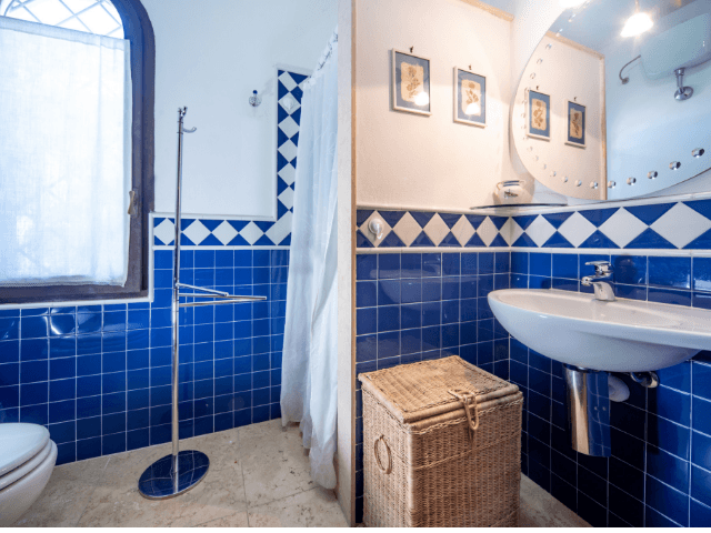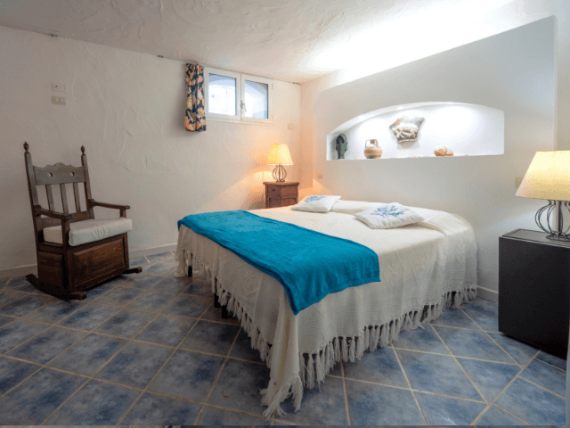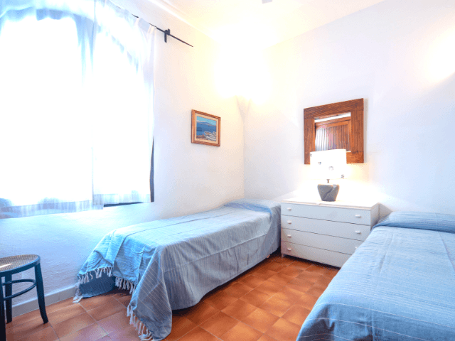 Die Villa Costa Rei Mediterranea bietet zwei Doppelzimmer und ein Ehebettzimmer sowie zwei Bäder im Erdgeschoss, für die heiße Jahreszeit gibt es im Flur eine Klimaanlage. Letztere ist im vierten Schlafzimmer nicht notwendig: Denn es liegt im Souterrain, hat zwei Lichtschächte und hier ist es im Sommer angenehm kühl. Hier im Untergeschoss gibt es außerdem ein Badezimmer sowie eine Waschküche.