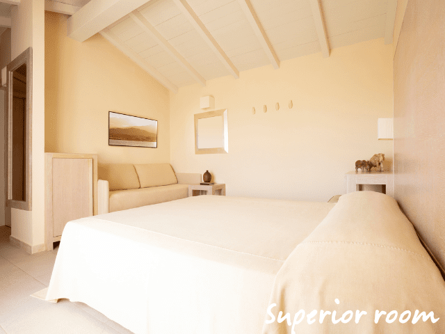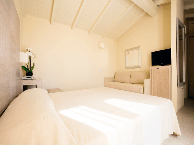 Die 100 Zimmer von Spiagge San Pietro sind über den Park verteilt und befinden sich im Erdgeschoss oder ersten Stock. Die hellen und modernen Zimmer verfügen über eine Klimaanlage, eine Minibar, einen TV, einen Safe und eine eigene Terrasse oder einen Balkon. Neben den Classik Zimmern gibt es mehrere Familienzimmer, Prestige, Superior, Deluxe und Premium Zimmer sowie Junior Suiten. Das Resort hat 2 Liegestühle und 1 Sonnenschirm pro Zimmer am Strand reserviert, der nur wenige Gehminuten vom Resort entfernt ist.