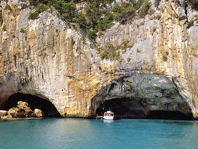 Die „Grotta di Nettuno“, die Neptungrotten, etwa 25 Kilometer von Alghero entfernt, gehören zu den beliebtesten Sehenswürdigkeiten dieser Ecke Sardiniens. Die imposante Kalksteinklippe mit einer Höhe von nicht weniger als 204 Metern an der Spitze der Landzunge Capo Caccia beherbergt beeindruckende Stalaktiten und Stalagmiten. Vom Hafen von Alghero aus können Sie bei gutem Wetter eine Bootsfahrt zu den Höhlen unternehmen. In etwa 45 Minuten können Sie an den beeindruckenden Klippen von Capo Caccia vorbei zum Eingang segeln, der nur einen Meter über dem Meeresspiegel liegt. Sie können die Neptunhöhlen auch mit dem Auto erreichen. Über eine Panoramaroute von Alghero gelangen Sie zum Parkplatz am Leuchtturm. Über die sogenannte „Escala del Cabirol“ (Ziegentreppe) mit nicht weniger als 654 Stufen, die komplett in den Felsen gehauen ist, gelangt man zum Eingang der Höhle.